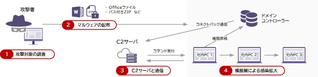 APTグループによる標的型メール攻撃シナリオの例