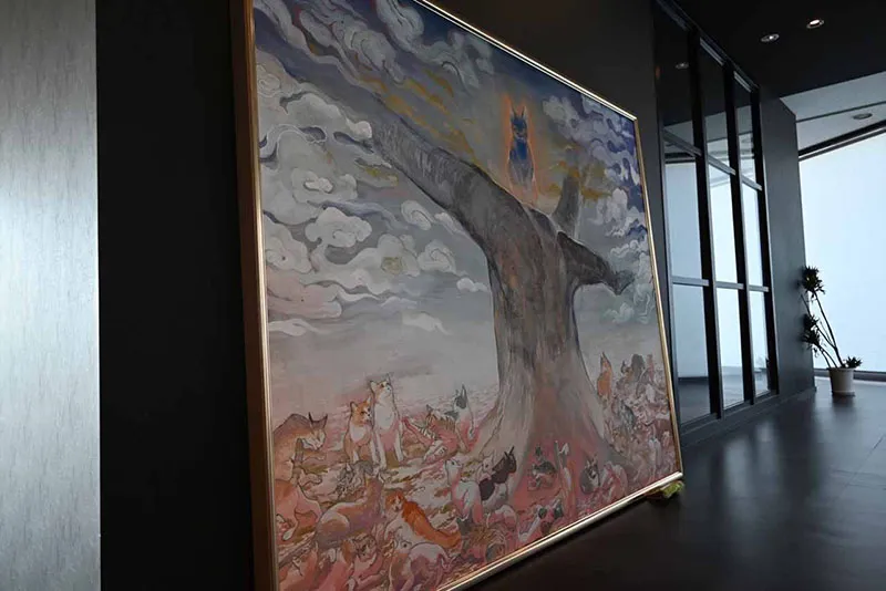 アルサーガ様の熊本オフィスは随所に「遊び心」が取り入れられており、特にこの猫の絵画は目を見張るものがあります。アルサーガ様が指針の一つとして掲げられている「前提に囚われるな」が体現されているかのようです。